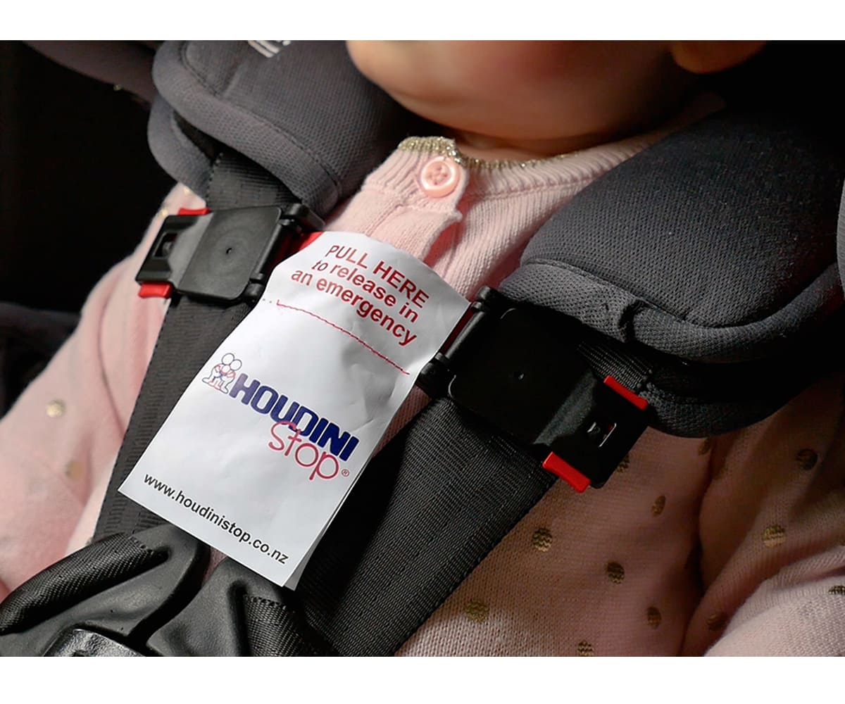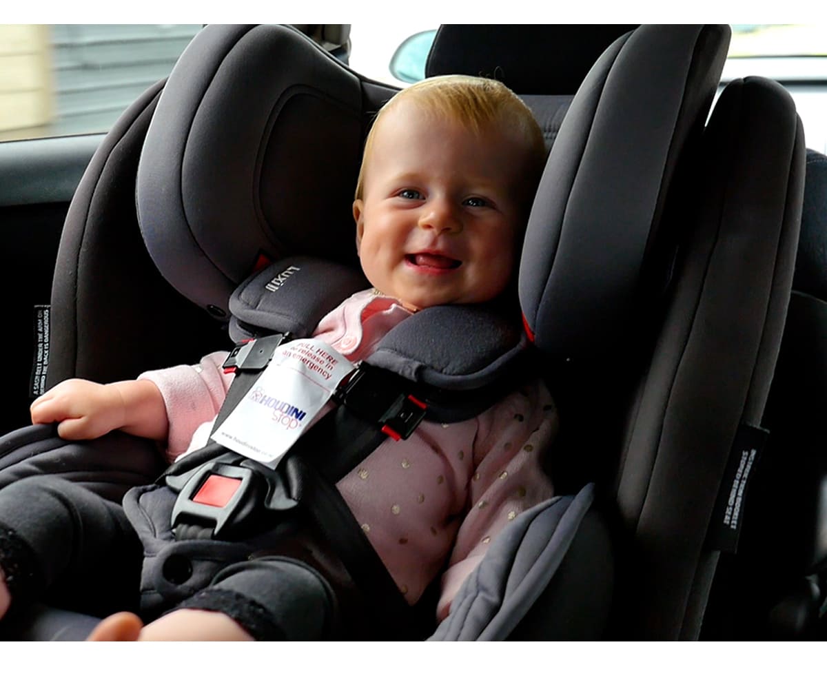 ¡El accesorio perfecto para los bebés y niños pequeños escapistas! Con la hebilla de seguridad Houdini Stop, evitarás que tus pequeños escapen de un arnés de 3 o 5 puntos.